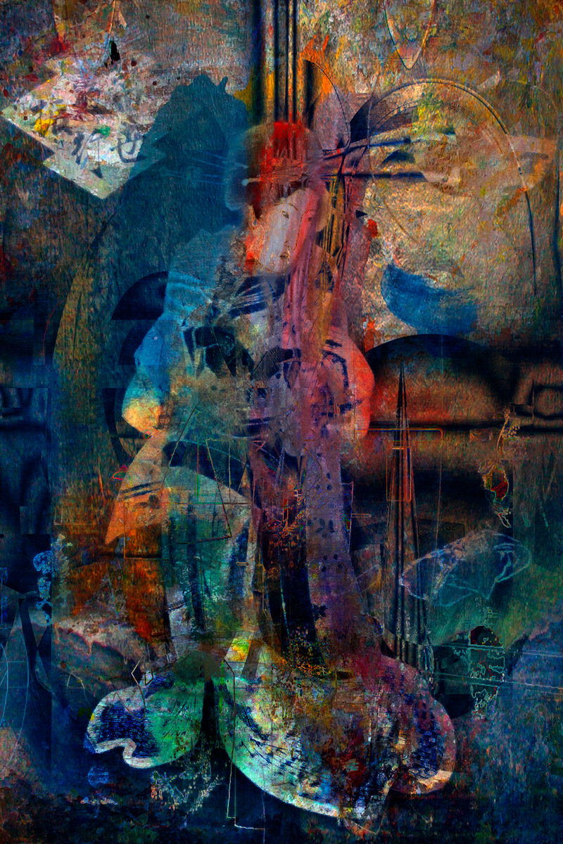 Red Light is a digital artwork that explores the tension between shadow and illumination, weaving together layers of abstraction with fleeting traces of the human form. At its center, a figure emerges in fragments, as if half-remembered, bathed in deep blues and textured with hints of crimson glow. The effect is both intimate and elusive, pulling the viewer into a world where reality and imagination merge.