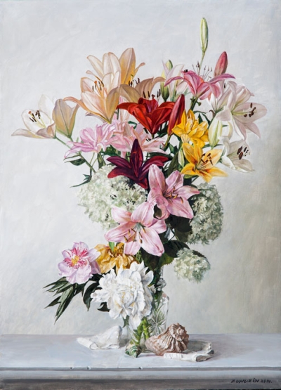 Lilies in a Crystal Vase and Seashell